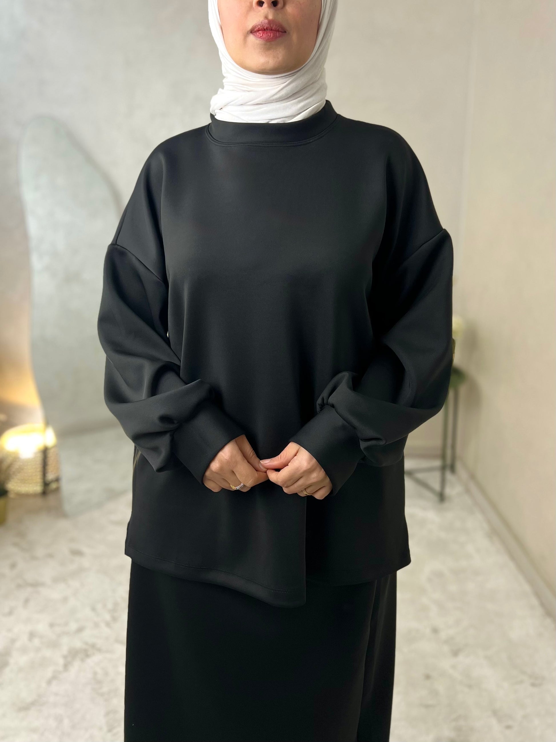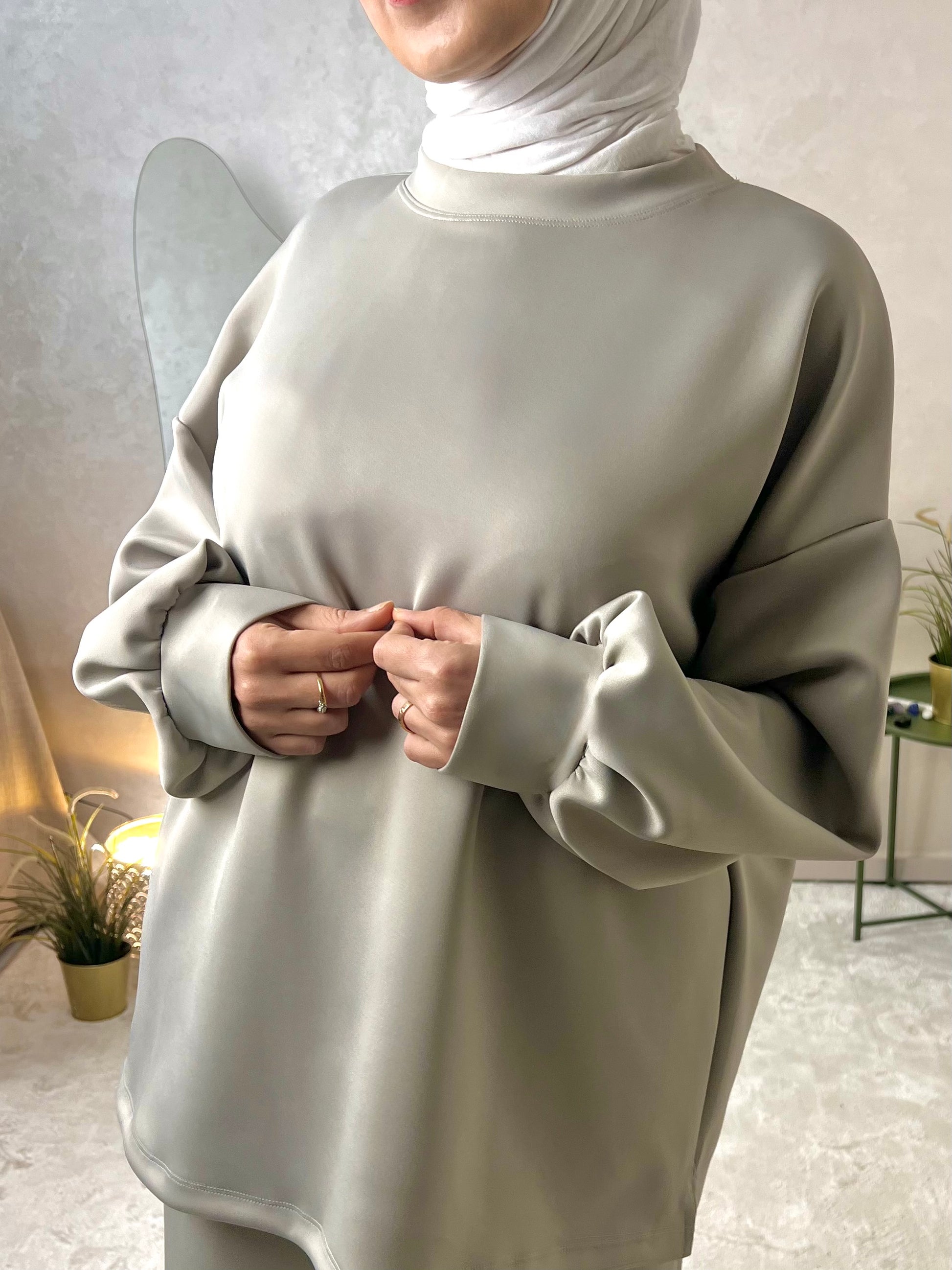 - un top oversize à la coupe fluide, moderne et pudique